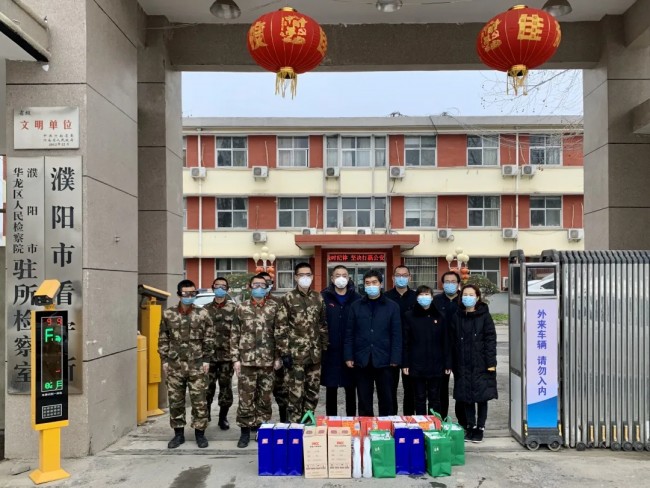 自新冠肺炎疫情发生以来,濮阳市华龙区人民法院党组深入督导,关心关注抗“疫”工作者。2月29日上午,受党组委托,华龙区法院党组成员、副院长冯东林,中原法庭庭长张志勇,法警大队政委陈宣作等一行慰问了驻市看守所武警官兵,并赠送防疫和食品物资。