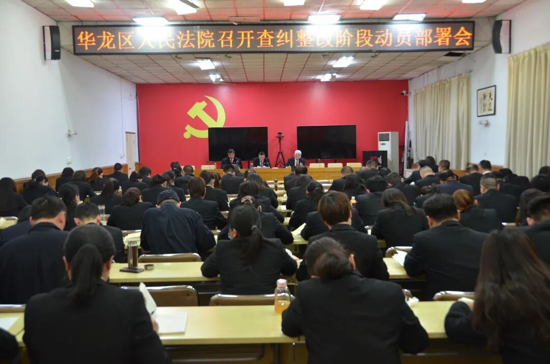 2021年4月14日晚,华龙区人民法院召开队伍教育整顿查纠整改环节动员部署会,由党组副书记、常务副院长杨俊琦同志主持。全体干警参加此次会议。