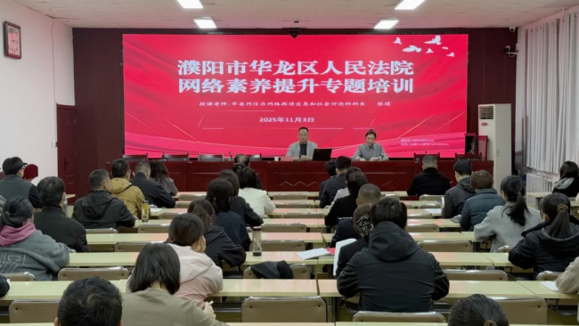 11月3日,濮阳市华龙区人民法院特邀市委网信办网络舆情应急和社会评论科科长张璞就如何提升网络素养进行了专题培训。