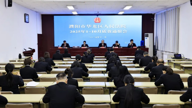 11月13日,濮阳市华龙区人民法院召开2025年1-10月审判质效通报会。会议由审判委员会专职委员程善磊主持,院领导、各部门负责人及全体员额法官参加会议。