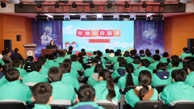 一年之计在于春,在新春开学启航之际,为切实守护辖区内未成年人健康成长,筑牢校园安全法治屏障,濮阳市华龙区人民法院走进濮阳市第十中学,为同学们带来元气满满的法治开学第一课:《拒绝校园欺凌》,用法治的星星之火照亮未成年人成长之路,为同学们的校园生活保驾护航!
